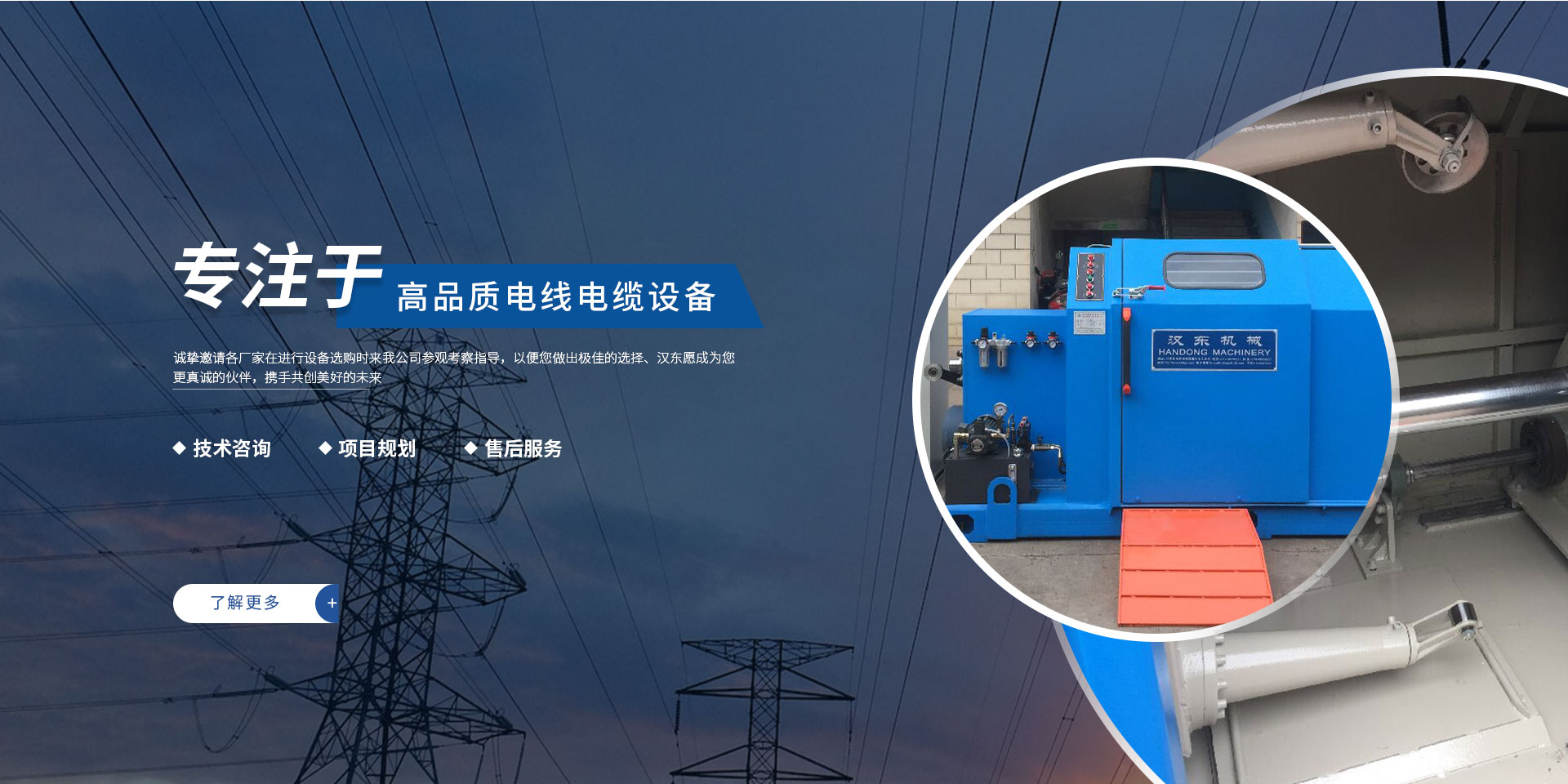 常州漢東機械始創(chuàng)于2006年,是集電線電纜機械設計、開發(fā)、制造、安裝、調(diào)試為一體化的高科技企業(yè)。本公司自開業(yè)以來,積極引進日本,歐美等國外電線電纜設備之先進技術(shù),先后成功推出了達到行業(yè)先進水平的電線電纜設備,主要產(chǎn)品有擠出、繞包、束線、成纜等電線電纜固定設備。在提供系統(tǒng)設備的同時,還向客戶提供售前技術(shù)咨詢、項目規(guī)劃、以及售后服務。我公司本著“以人為本、科技先導、用戶為上”的宗旨,為客戶提供牢靠的產(chǎn)品與省心的服務。漢東愿成為您更真誠的伙伴,攜手共創(chuàng)美好的未來!